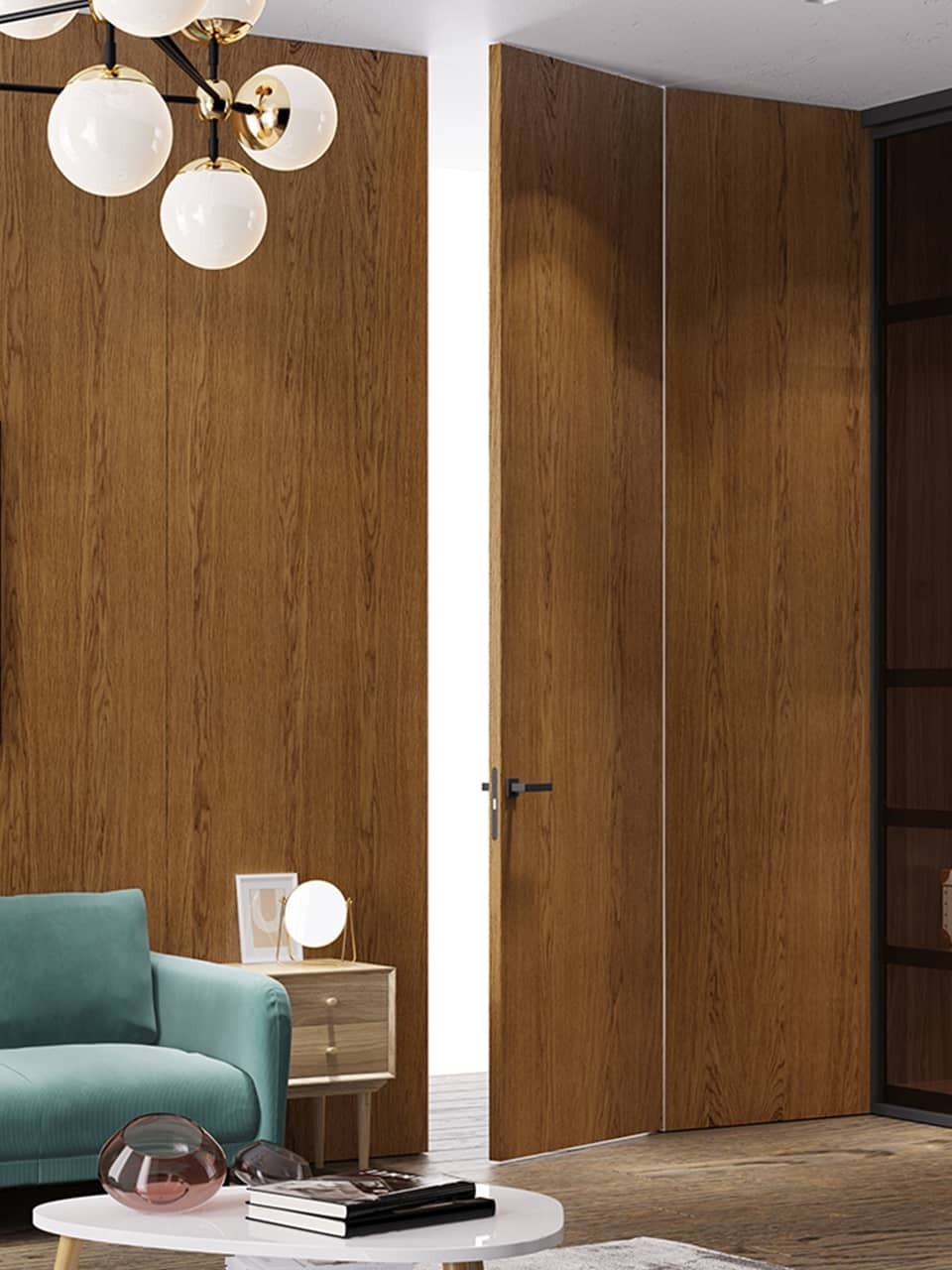 Коллекция в разнонаправленном натуральном шпоне дуба, ореха и эвкалипта